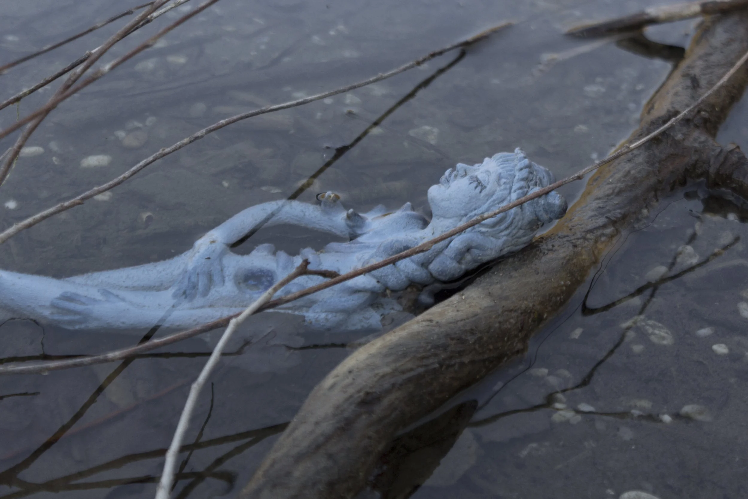 Sekira’s sculptural practice centers on ceramics, reworking Ukrainian Slavic folklore and personal memory into narrative form. Their works often center on mermaids and forest spirits, figures that embody both strength and vulnerability, reflecting complex expressions of femininity. Infused with autobiographical fragments, the sculptures explore passion, mortality, and resilience within post-apocalyptic landscapes that mirror the uncertainties of our time.